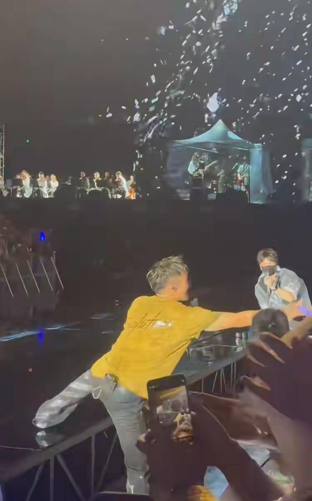 随后演唱会结束,谢霆锋走到后台,工作人员立马递上去毛巾,希望能让他擦一下,但是看到仍然有那么多粉丝舍不得离去,他还是停下来跟大家打招呼,合影,忙的不亦乐乎。